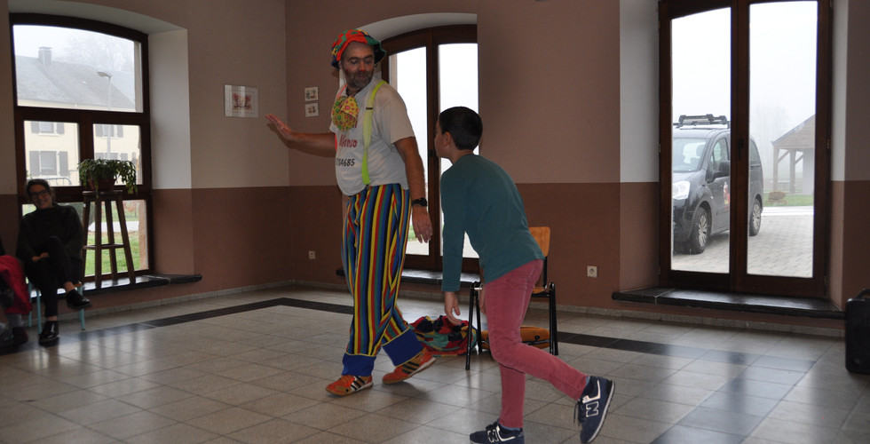 Saint Nicolas nous a offert un spectacle. Jeux de mots avec nos prénoms, quelques uns en ont fait les frais ("Les O", "T'es haut", "Triste temps", ...). Danses, chansons de Saint Nicolas revisitées, mimes, blagues en tout genre, ... Nous avons ri et même quelques fois pleuré de rire... Merci Saint Nicolas, nous avons passé une très belle matinée ...