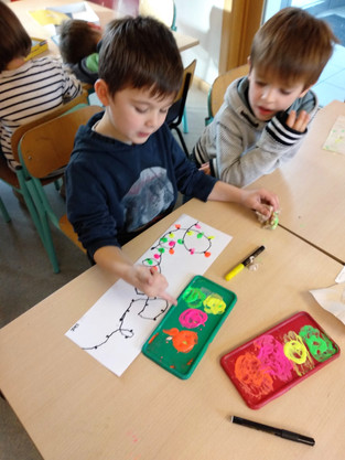 En décembre, nous avons appris à dessiner de jolies boucles. Avant de le faire sur une feuille nous avons réalisé plusieurs ateliers: